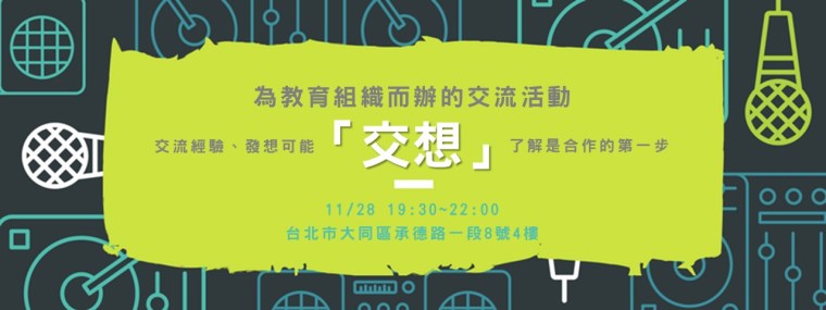 2017 年11 月 28 日,由接棒啟蒙計劃主辦本月的「教育沙龍」,本次參與為學次方、啟夢教育諮詢、QriticA、水秀工坊、TimeMap、時習教育工作室、LENS中華學習體驗分享協會、純粹學共九個組織,不同於以往的不只是創辦人,所有團隊成員皆可參與,從互相了解中激盪出更多可能,一起打群架。